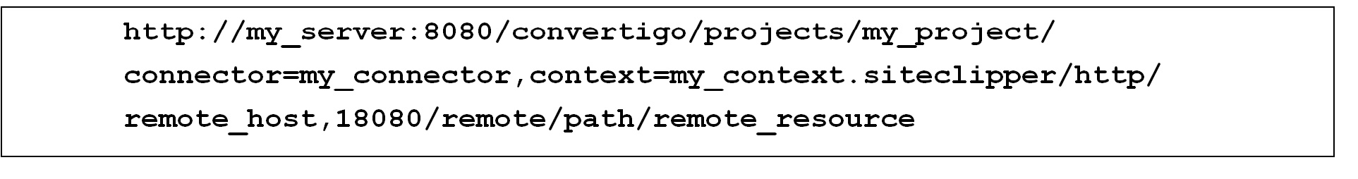 - $tail_path$ = “/convertigo/projects/my_project/connector=my_connector,context=my_context.siteclipper/http/remote_host,18080/remote/path”